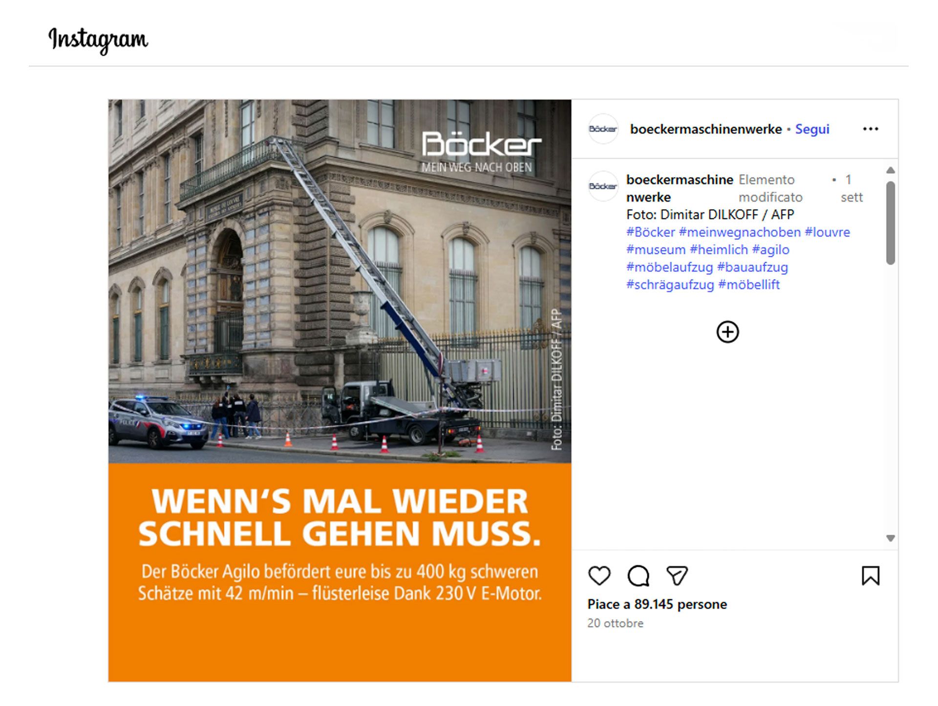 Un furto milionario al Louvre si trasforma in un'inaspettata opportunità di marketing per l'azienda tedesca Böcker, produttrice del montacarichi utilizzato dai ladri per rubare gioielli napoleonici del valore di 88 milioni di euro.