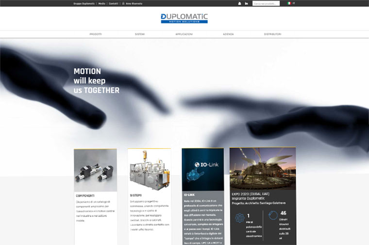 Duplomatic MS, player internazionale nello sviluppo di componenti e sistemi per il controllo di movimento e l’automazione, desiderava un nuovo sito web che fosse non solo uno strumento agile di informazione e comunicazione, ma che si configurasse anche come portavoce primario di una rinnovata corporate identity.